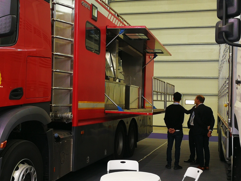 本次参展的应急保障餐饮车,是宏宇公司基于奔驰Arocs 6X4全能越野重卡底盘改装制造,专用于提供野外餐饮保障,提高野外执行任务的保障能力;广泛适用于军队、公安特勤、消防、医疗卫生、抢险、应急救援等多种用途。车内配置齐全,完全满足在野外突发事件等情况下100-300人的餐饮保障。在今年的广交会上,这款奔驰奔驰Arocs 6X4全能越野也曾代表宏宇公司参展,深受商务厅各级领导以及多个国家采购商的青睐和好评(详情请点击:金秋十月,宏宇车型秋季广交会再吸睛)。