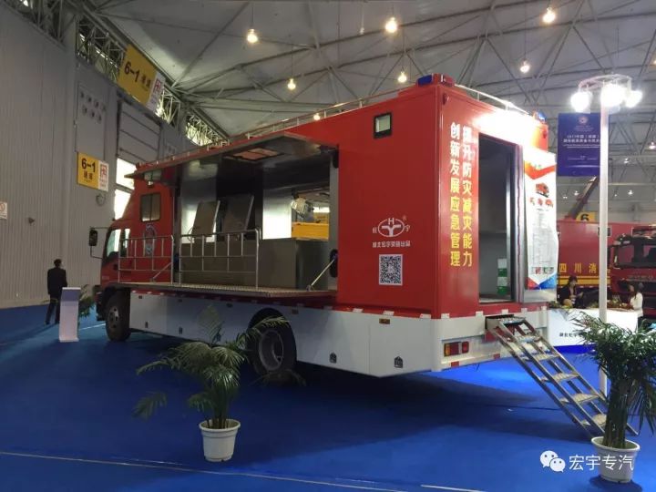 为高度积极契合此次展会主题——应急救援装备和技术,我公司此次参展的代表车型为虹宇牌战勤餐饮保障车和消防宣传车。